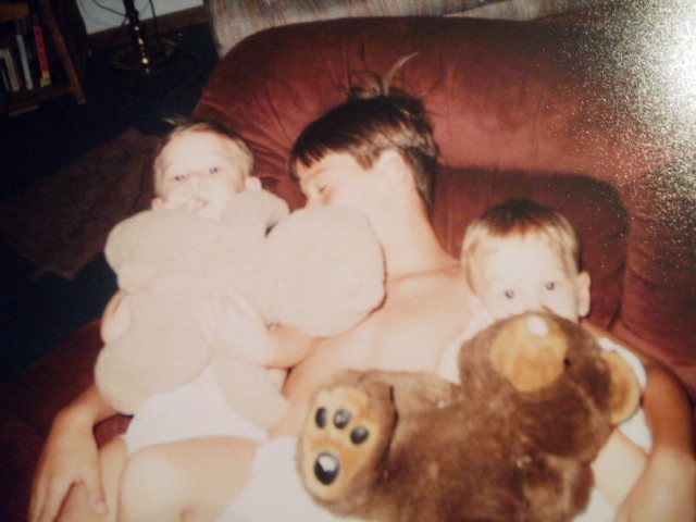 bears. Each twin had a bear, and the bears could not be lost, even for a moment. Our kingdom could not run without the bears. We learned to treasure sleeping babies on our chests. Or anywhere, really. Sleeping babies.......mmmmmmmm. Is there anything better? No one could tell them apart but us, and everyone always wanted to know if they were identical. We did not know. Due to the emergency birth it was impossible to tell and we thought it was easy to tell them apart even though no one else ever could. And what difference did that make anyway? Was it needed for our survival that day? Nope. We still do not know, or care, or see what difference it makes. We can still tell them apart and few others ever can. That's our life. One thing I do find hilarious is that now the Rock Star's Wife, our own Rockette, is often confused when she sees them out of the corner of her eye. She can't tell if it's her husband or one of the twins. Never fear Rockette, they will all do your bidding. Just be careful who you grab to kiss. Or not. It will make for interesting stories in later years. hahaha